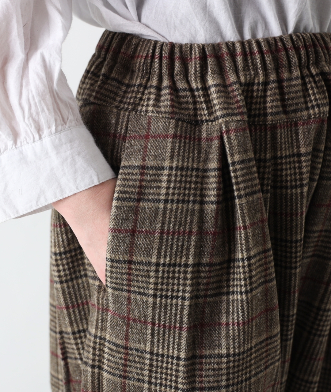 手ざわりにやさしいあたたかさを感じるウール混のパンツ。