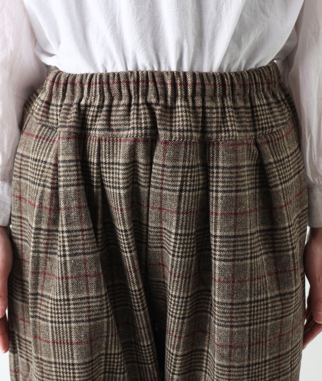 ウエストは総ゴム仕立て、内側の紐でフィット感の調整もできます。