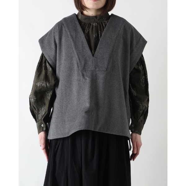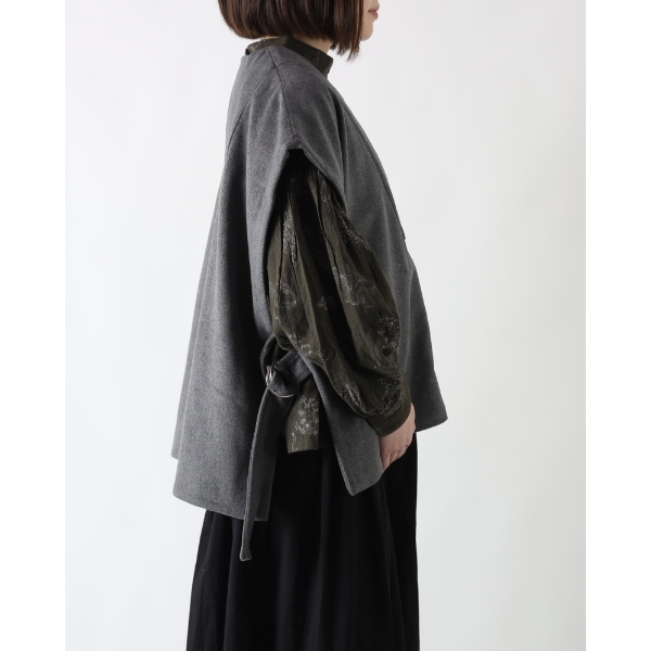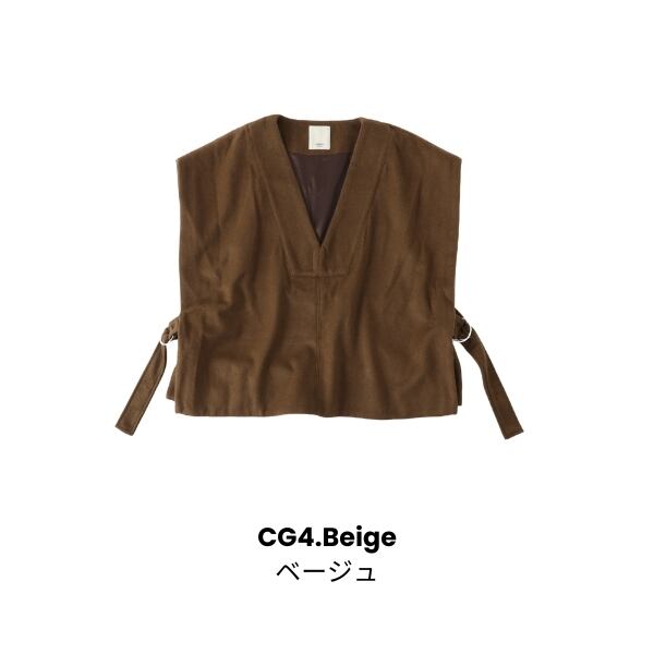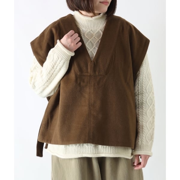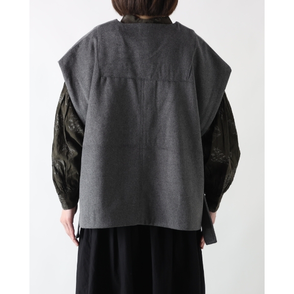 暖かみある肌触りのウール混ビーバー素材を使用したサイドベルトベスト。