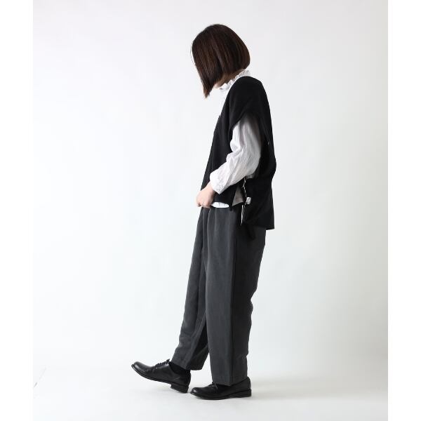 麻の素朴な雰囲気を感じられる綿麻タックテーパードパンツ。